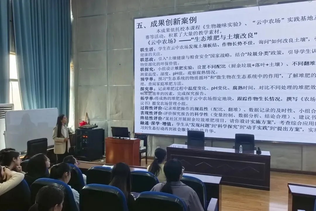 杨老师从理论建构、实践路径到推广成效,系统分享创新教学模式的内涵、策略与经验。前沿理念清晰透彻,典型案例扎实可鉴,实施路径具体可操作,为我校生物教师专业成长注入新动能,也为两校后续深度教研合作奠定坚实基础。整场讲座兼具理论性与实践性,拓宽了教师教学视野,为教师专业成长注入新动能。