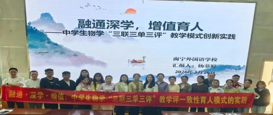 春风启新程,教研绽芬芳。2026年3月26日,南宁外国语学校生物教研组携优质教学成果与前沿教研经验,莅临凤山高中开展生物学科教学交流与成果推广活动。两校生物教师齐聚一堂,以研为媒、以教为友,共赴一场深耕课堂、成果共享、携手共进的教研之约。