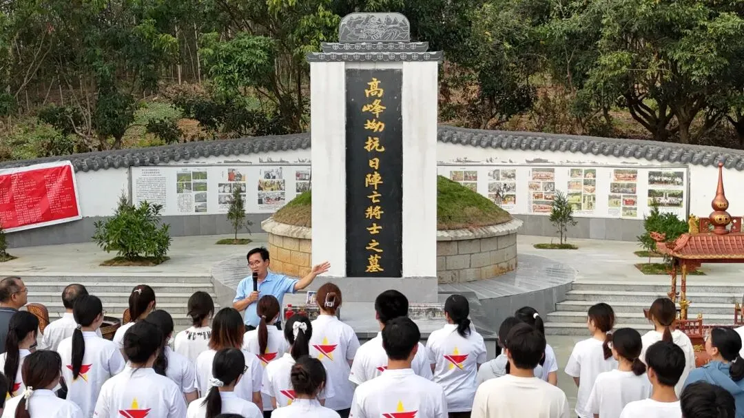 活动首先在高峰隘战役遗址展开。南宁学院陈雄章教授将时间拉回到1939年至1940年。那场惨烈的战斗中,弹尽粮绝的将士们以刺刀、石块与敌搏斗,没有一人后退。“把学生带到这里,就是要让他们亲眼看看,英雄是什么样子。”陈雄章说。