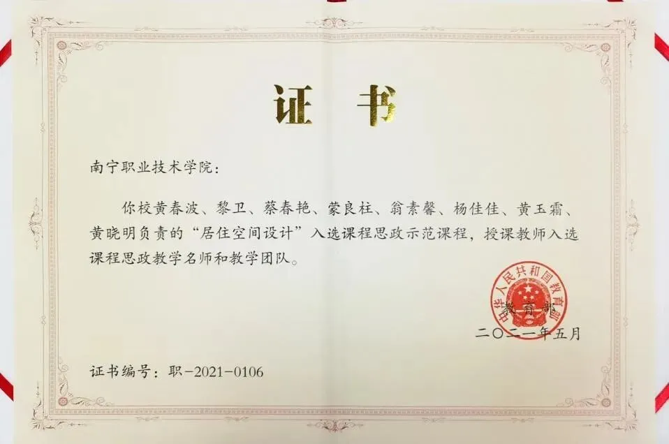 课程体系创新——建筑室内设计专业坚持“工教主导工学模式”的课程改革与开发,以市场需求为出发点、以职业能力培养为核心,构建了国家、省、校三级精品课程体系。其中《居室空间设计》课程荣获国家级精品资源共享课程;《民族建筑装饰设计与应用》、《室内装饰构造》两门为广西壮族自治区区级精品课程;完成了与精品课程配套的课程标准、立体化教材、网络课程、实施方案、评价体系、配套课件、学习指导、课程录像等教学资源的建设。为学生的学习提供了丰富的资源。