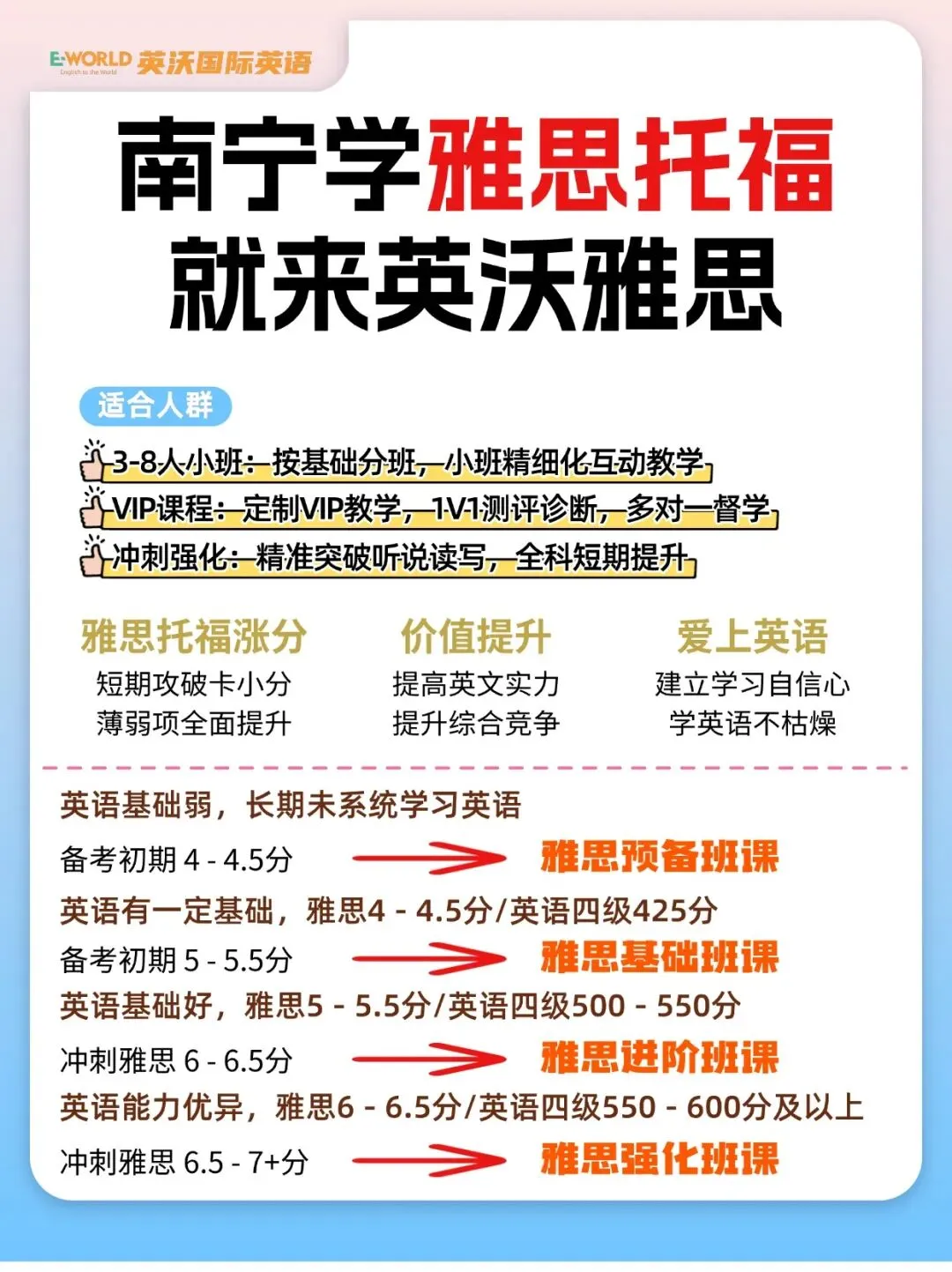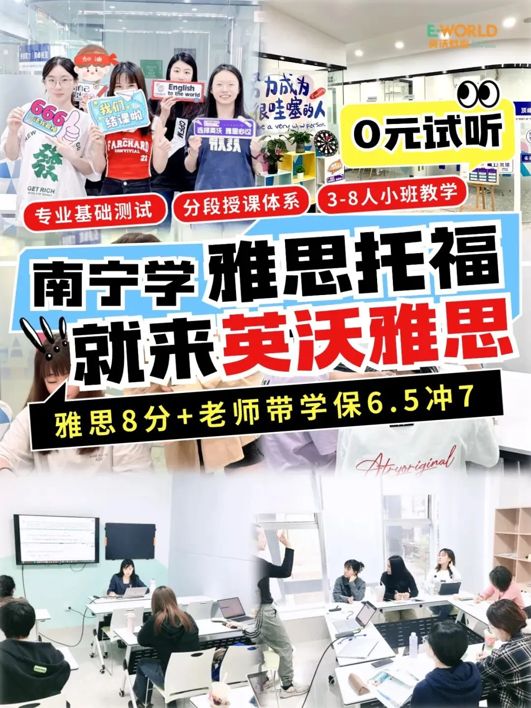 正在南宁备考雅思的朋友,如果你也想短期突破、稳稳涨分,欢迎来南宁英沃雅思试听一节课,感受不一样的教学氛围。