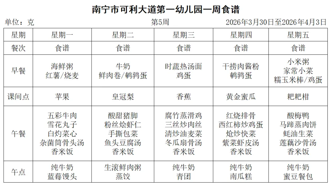 本周营养食谱