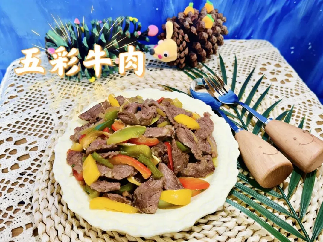 五彩牛肉、雪花丸子、白灼菜心、