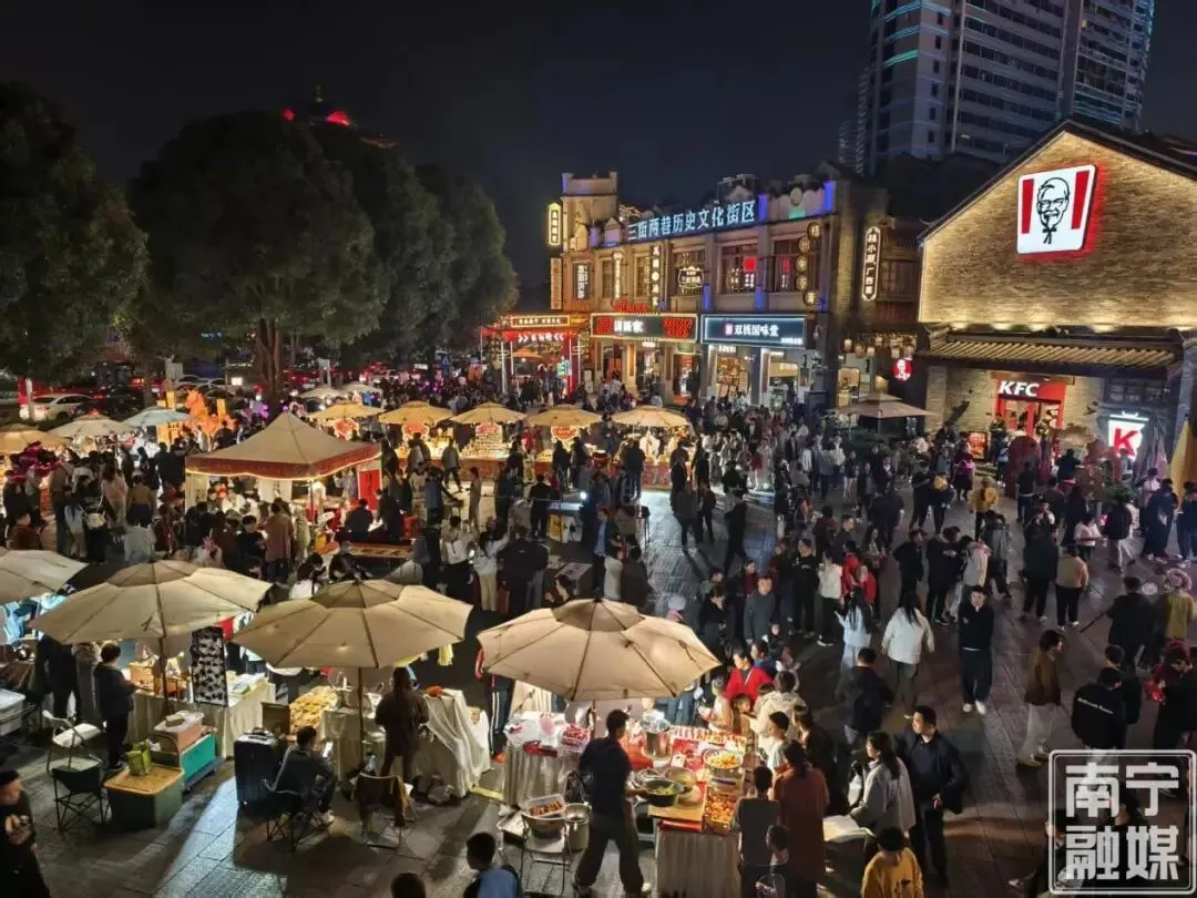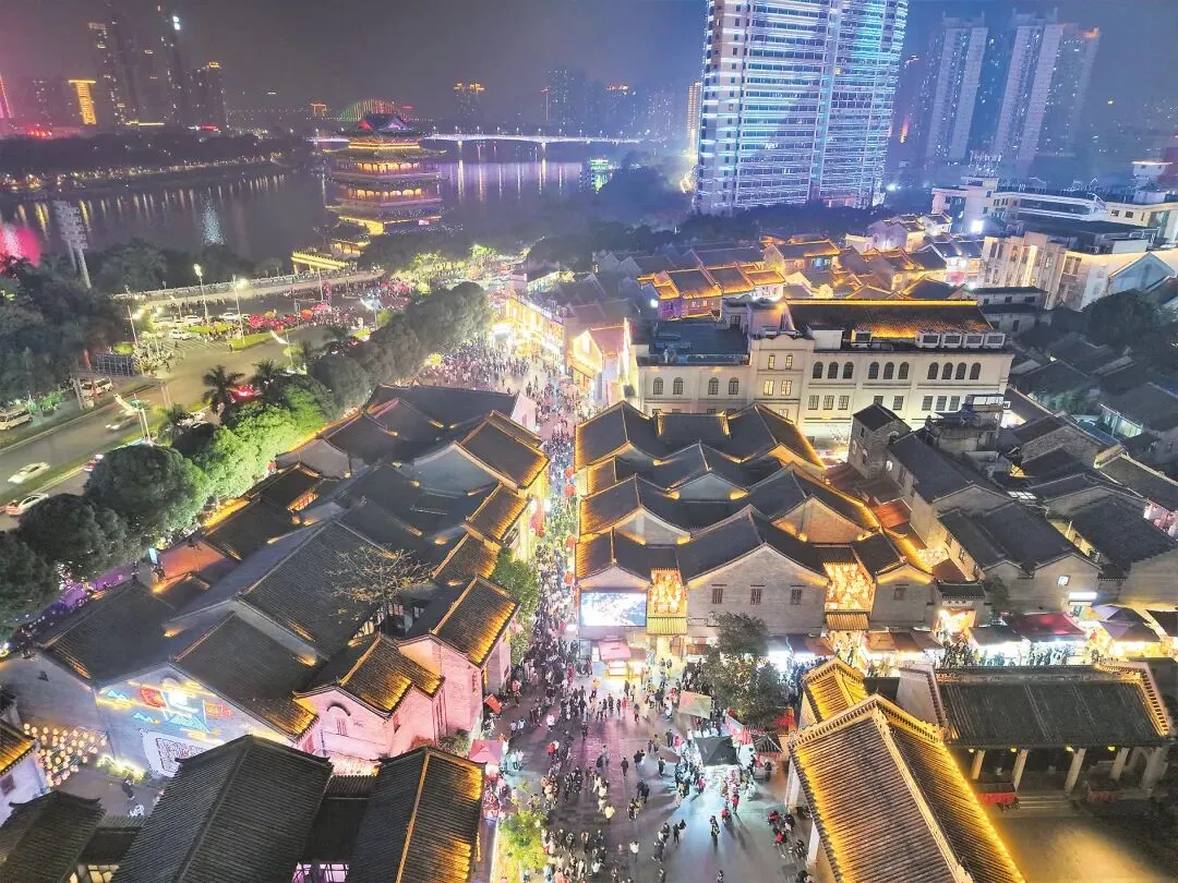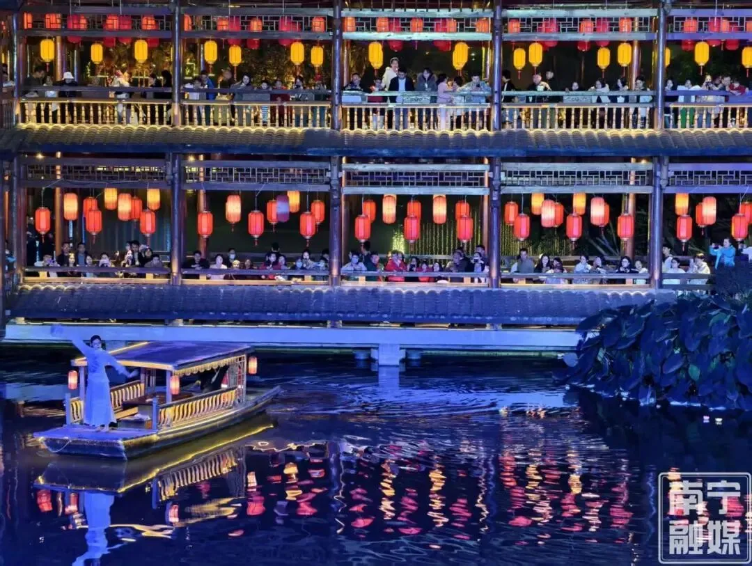 三街两巷始建于宋代,是古邕州商业发祥地,汇聚了城隍庙、邓颖超纪念馆等20余处文物及历史建筑。流光溢彩的灯火映照着古朴典雅的飞檐,身着传统服饰的年轻游客漫步青石板路,这样的场景宛若一场沉浸式的古今对话。