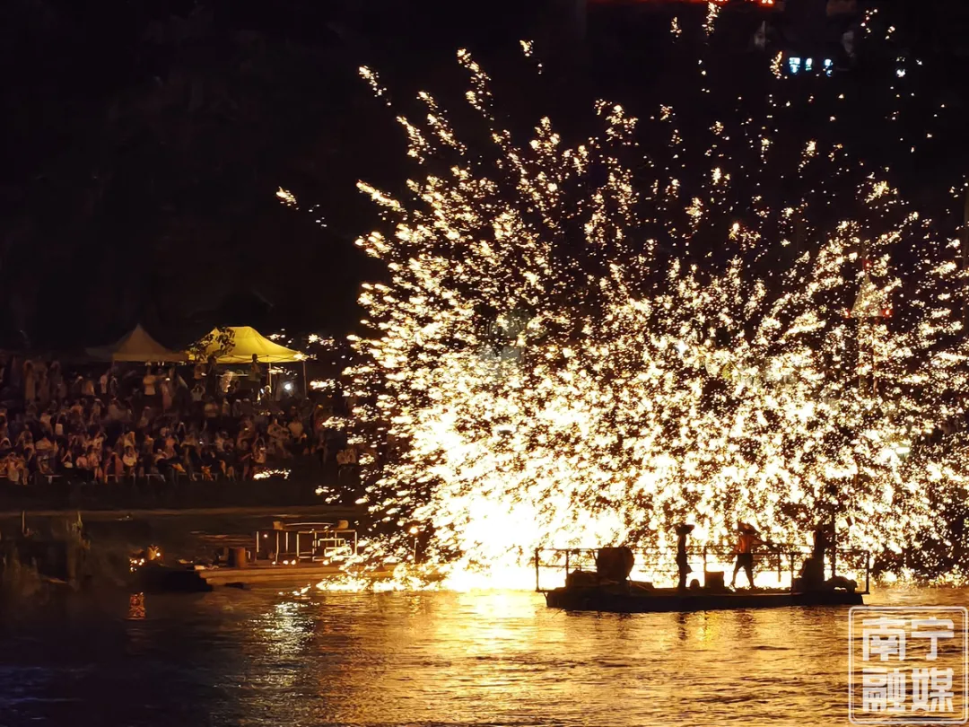 民生广场·水漾市集位于邕江畔的民生码头旁,入夜后变身满满烟火气的热闹夜市,你可以乘船夜游邕江,体验非遗打铁花的浪漫,享受叹茶赏江景的惬意时光。
