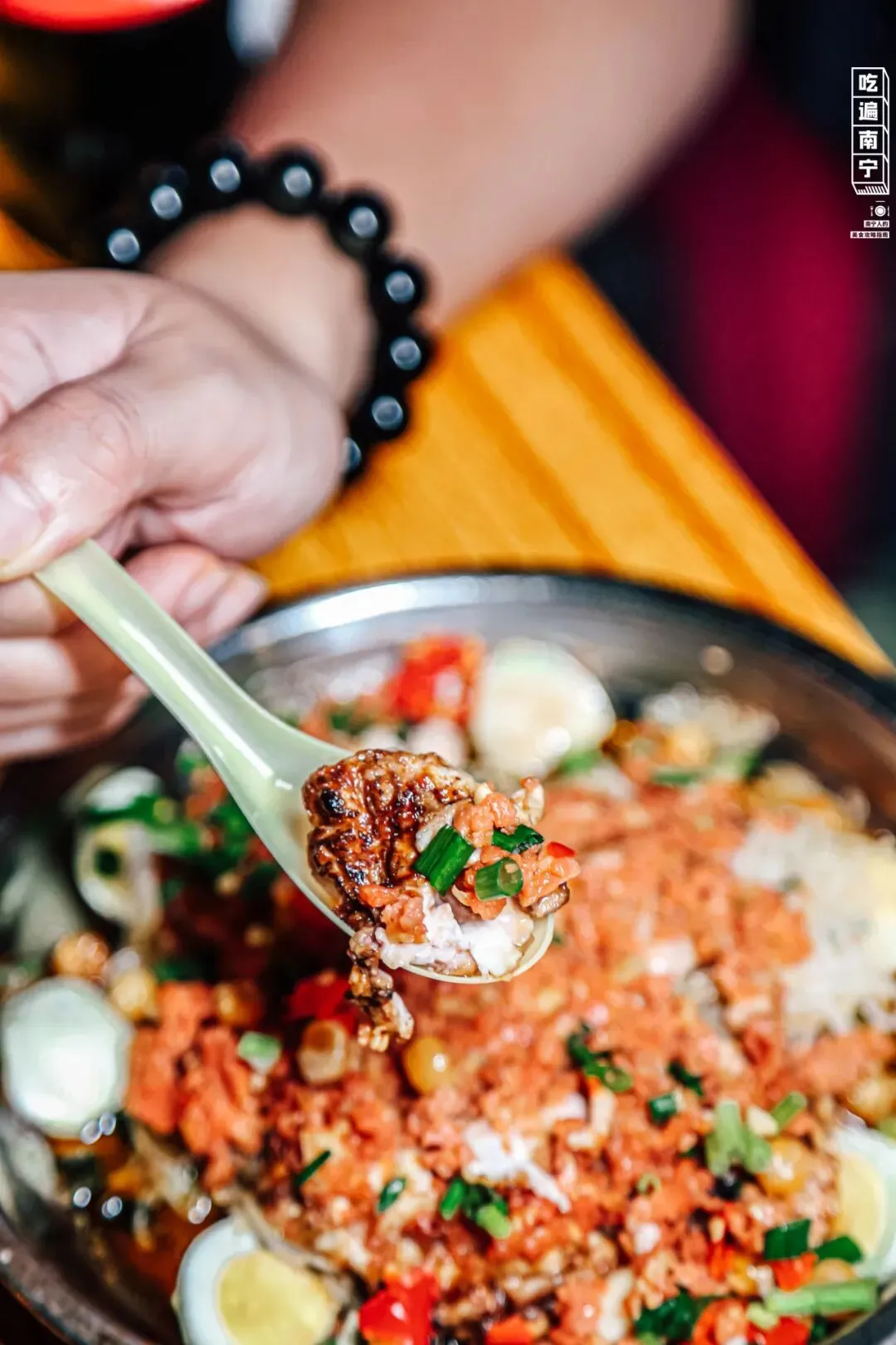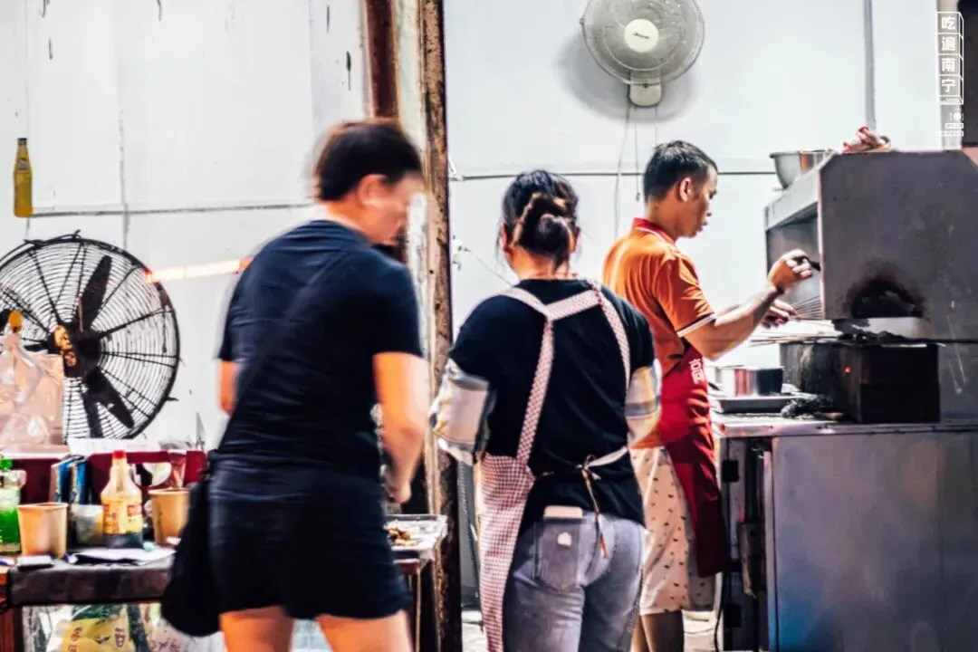 重庆人比较能吃辣,波仔又怕这种辣度,南宁人吃着觉得太辣了不太能接受,所以做了味道的改良。“但是我会建议每个客人都尝尝我们家麻辣口味的烧烤,当然哈,是能吃辣的人,不然会被辣得拼命灌水的。”烤了十多年烧烤的他,早已退居“幕后”,把自己内心自成一套的烧烤秘诀,传给了店里的烧烤阿姨。“她们也在店里烤了10多年的烧烤了,味道早就牢记于心了。”以为「波仔大排档」的烧烤和烤脑花好吃,就没了?殊不知波仔夫妻特调的“狗粮”,更甜更好吃!十一点后大排档桌桌满座,邻座的缝隙间都加了塞,这时候,忙碌的店员中又多出了老板娘的身影。手里握着川渝烧烤的辣,耳边时不时回响着被这对夫妻档的甜。NO.1