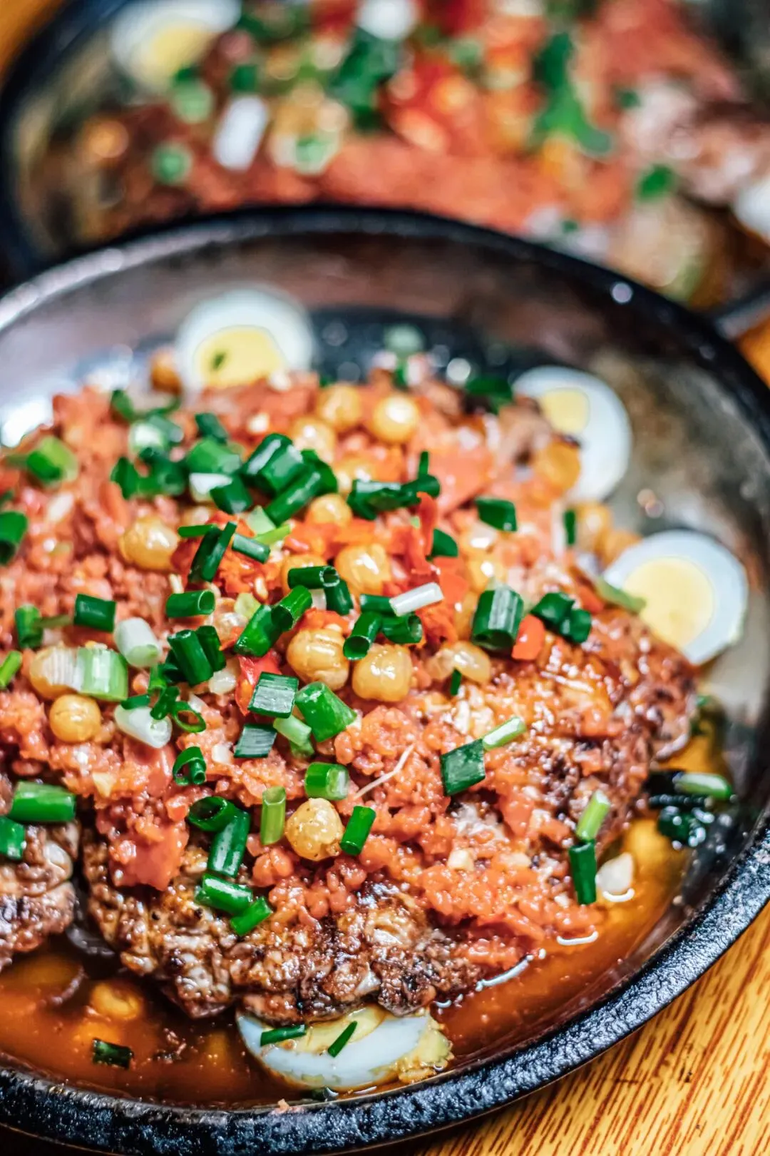 挖起一勺脑花伴着碎火腿入口,是层次感十足三重体验,葱花提香、火腿碎层层叠叠丰富了脑花绵密的口感,碟子底部的辣椒油散着扑鼻的香。