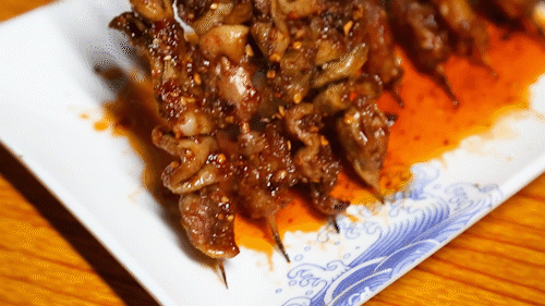 烤肥肠,爱的人会毫不犹豫点两手,一手麻辣,一手原味。烤制后的肥肠裹着密密麻麻的辣椒颗粒,色泽黄亮诱人,外皮脆焦,内里软嫩。肥腴的烤肥肠,一口咬下还爆汁!每一道褶褶里头都是颗粒物与油脂的油脂相融的喷香,弹牙又带劲,越嚼越香。#烤牛板筋#