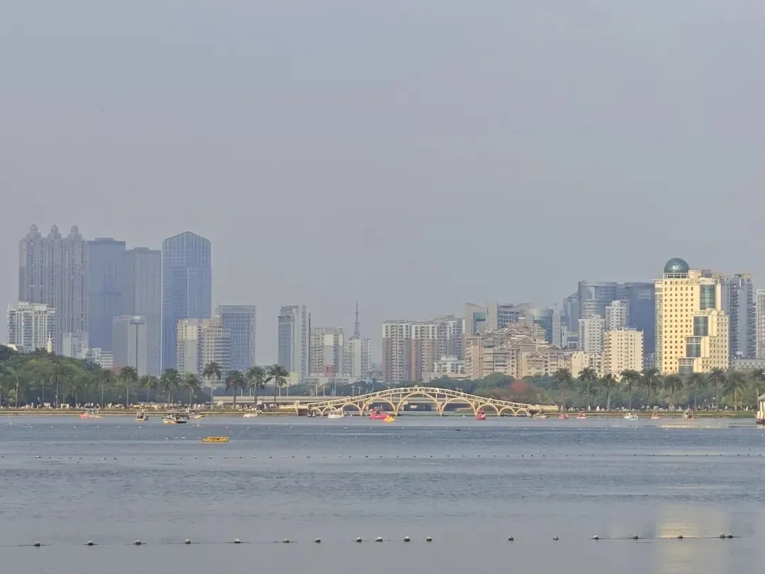 湖的两边通过多座桥连接。我站在其中一座桥上随手拍了几张,风景很漂亮。