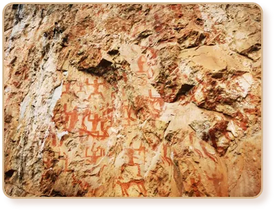 族人们以鸟羽为笔,赤铁矿粉为颜料,