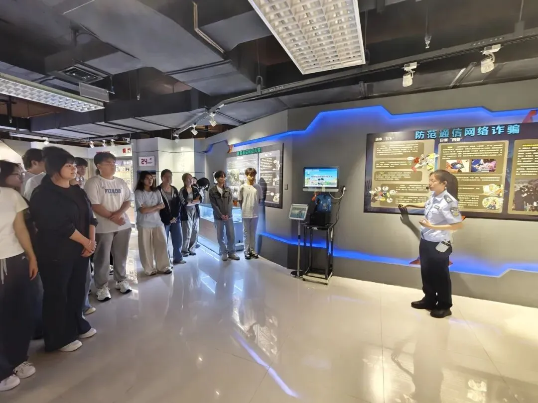 在博物馆讲解员的带领下,志愿服务队成员有序参观了公共安全教育馆,重点驻足识骗防骗展区。