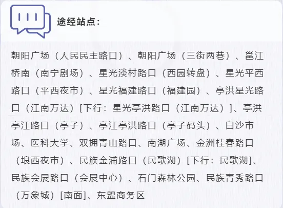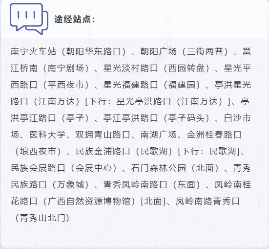 ✅日间线(周末/节假日10:00-18:00):南宁火车站→青秀山北门,打卡南湖公园、民歌湖、石门森林公园的春日绿意,一路繁花相伴。