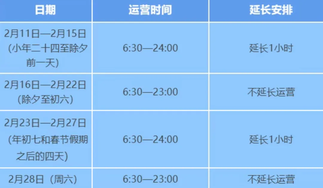 春节期间地铁延长运行时间