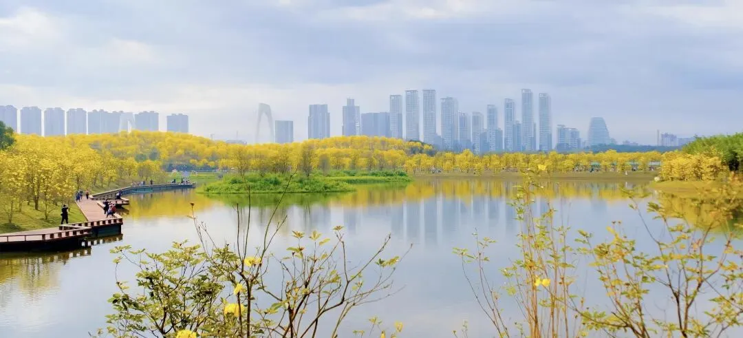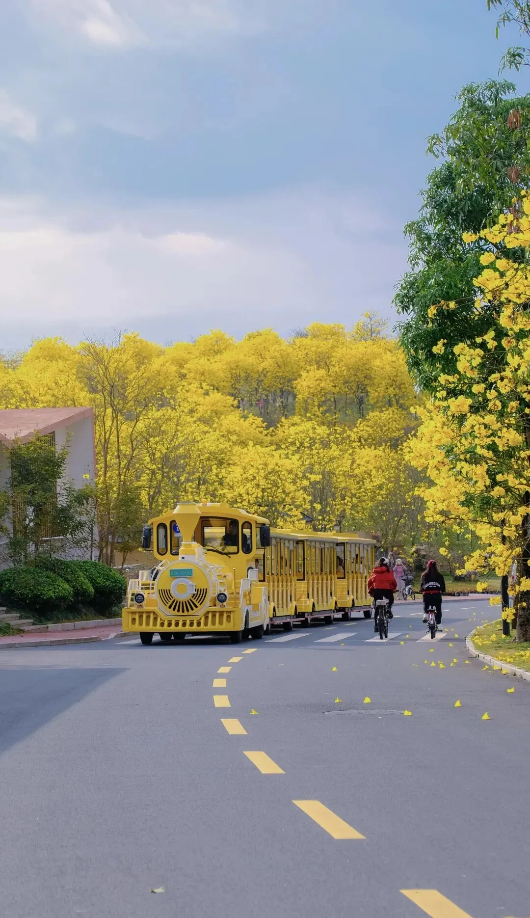 不用去远方!就在南宁青秀山东区,近7000株黄花风铃木已经开爆了,直接炸成金色海洋!