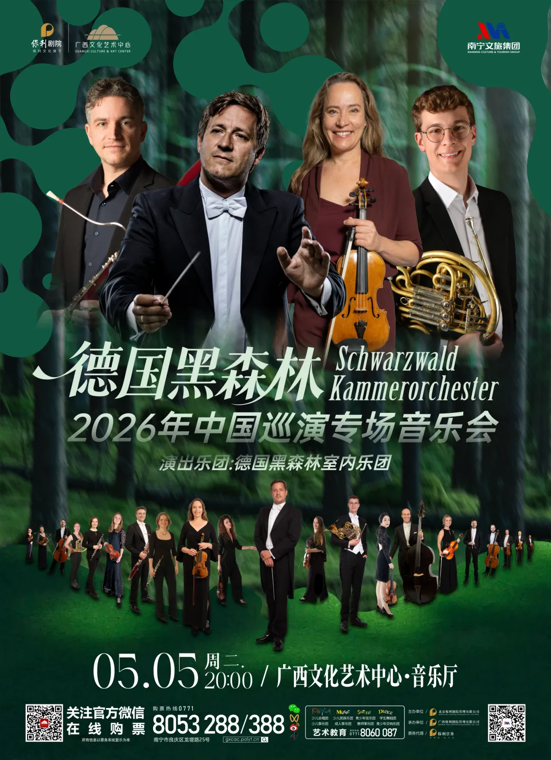 2026年5月5日,《德国黑森林2026年中国巡演专场音乐会》将来到广西文化艺术中心,用极致纯粹的音乐,为南宁观众带来一场听觉盛宴。