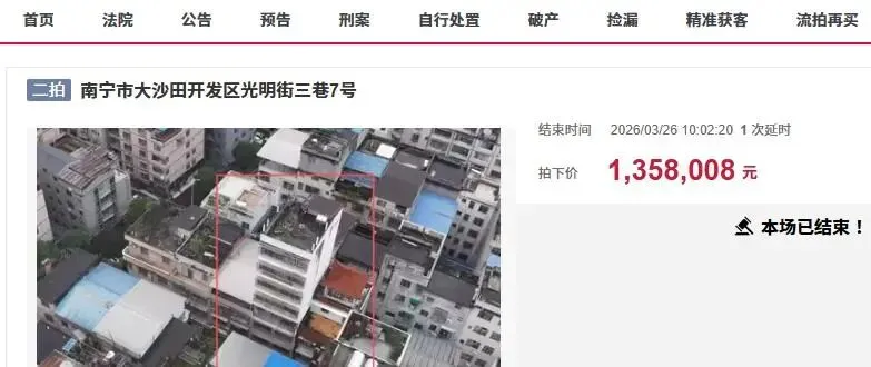 近日,在南宁市司法拍卖市场上,迎来了一宗重量级的房地产拍卖,一宗位于南宁市大沙田开发区光明街三巷7号房产被拍卖。此次拍卖的是一栋私人自建房。这栋私人自建房在这个片区,是鹤立鸡群的存在,因为这栋私人自建房有多达10层,这个在南宁市私人自建房中非常少见,南宁市大沙田片区,很多自建房都是五六层而已,多的也是7层,建了10层的非常少见。