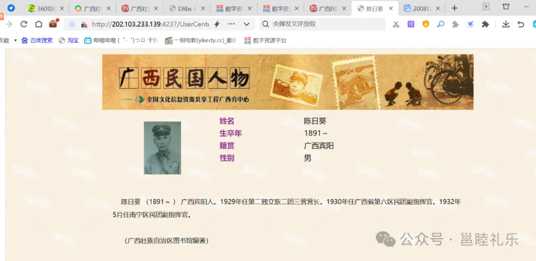 广西壮族自治区图书馆网站也有陈日葵简介和照片(下图),其照片与《广西一览》中的一模一样。