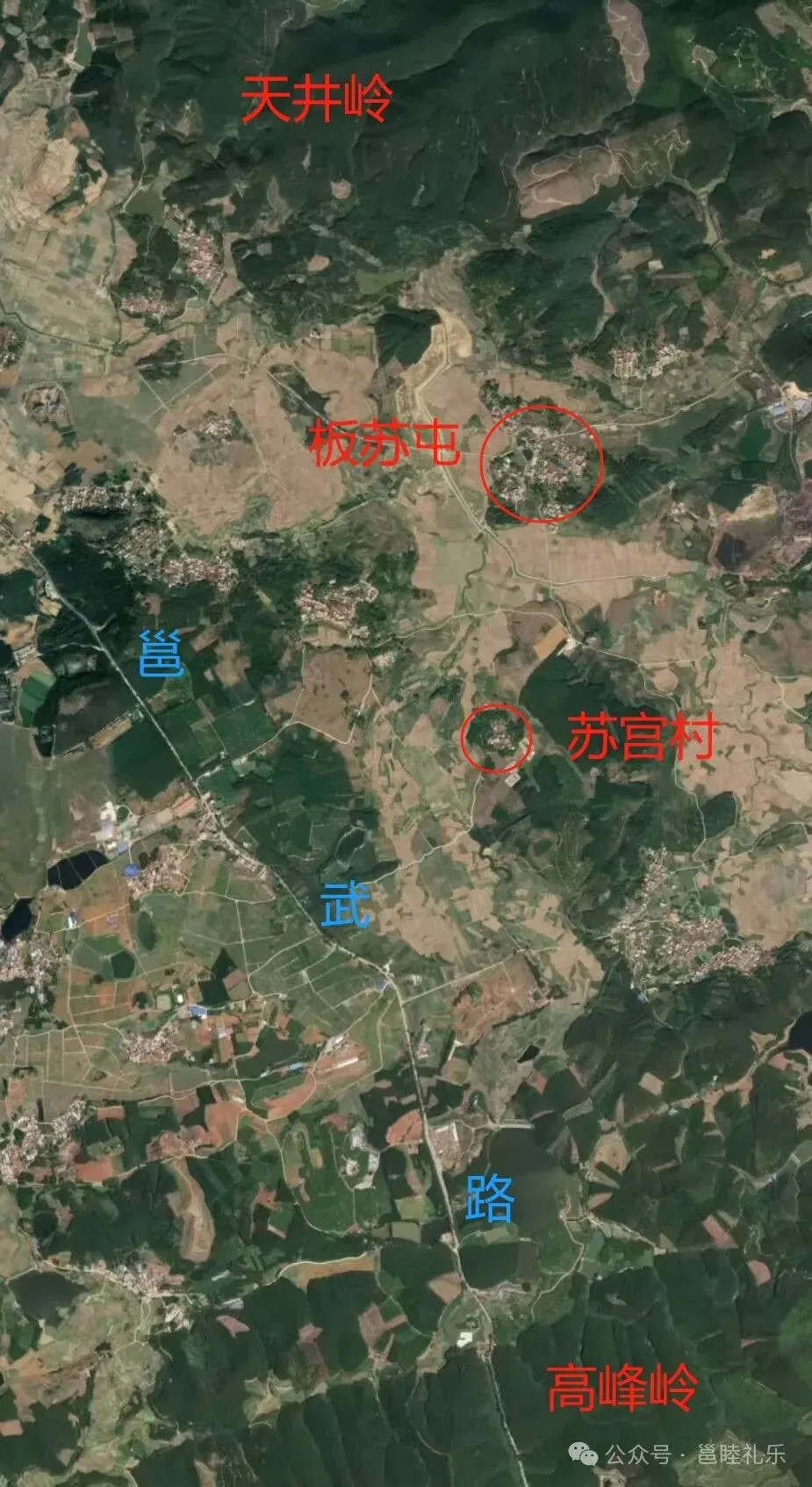 苏宫村周围地理形势图,北接天井岭,南控高峰隘,西通邕武路,村旁即双桥河