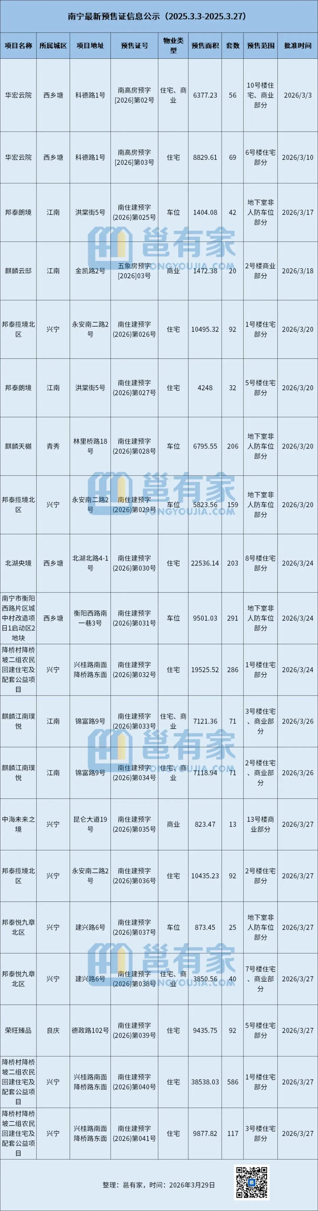 【首发】南宁最新预售证公示3.29
