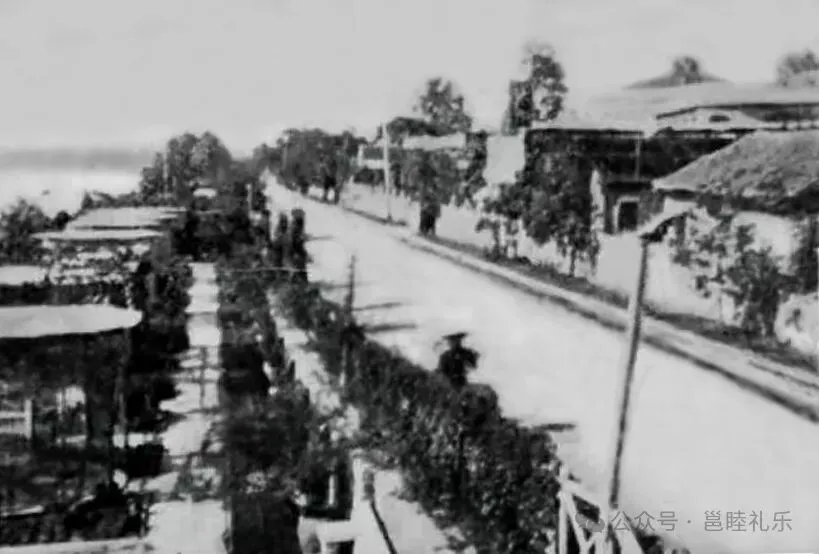 照片左侧为临江花园,右侧为民国广西省政府,中间为河堤路,即今日的江北大道。