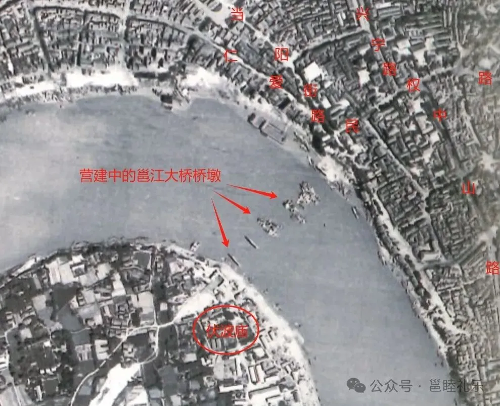 1961年南宁邕江航拍图,依然能看到伏波庙的轮廓