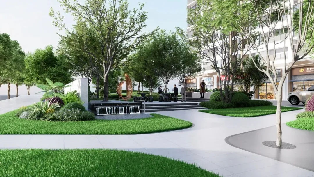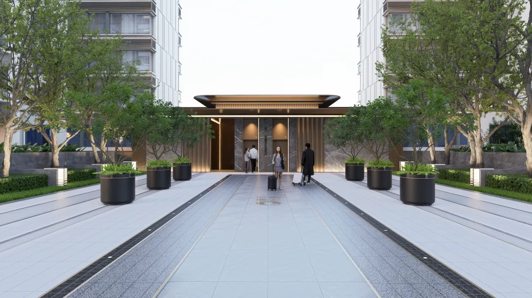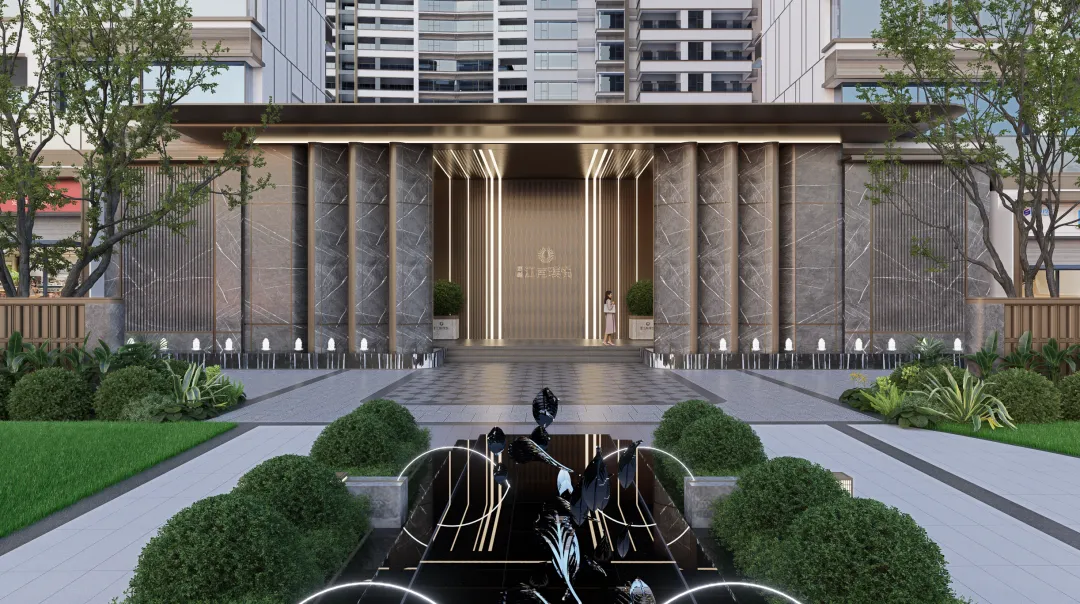 时光广场以酒店式入口营造归家仪式感,将度假般的松弛与精致悄然融入日常。迎宾水景以“鲤跃龙门”雕塑点睛,既寓意事业腾达、生活丰盈,亦让每一次归途,都成为心之所安的温柔启程。