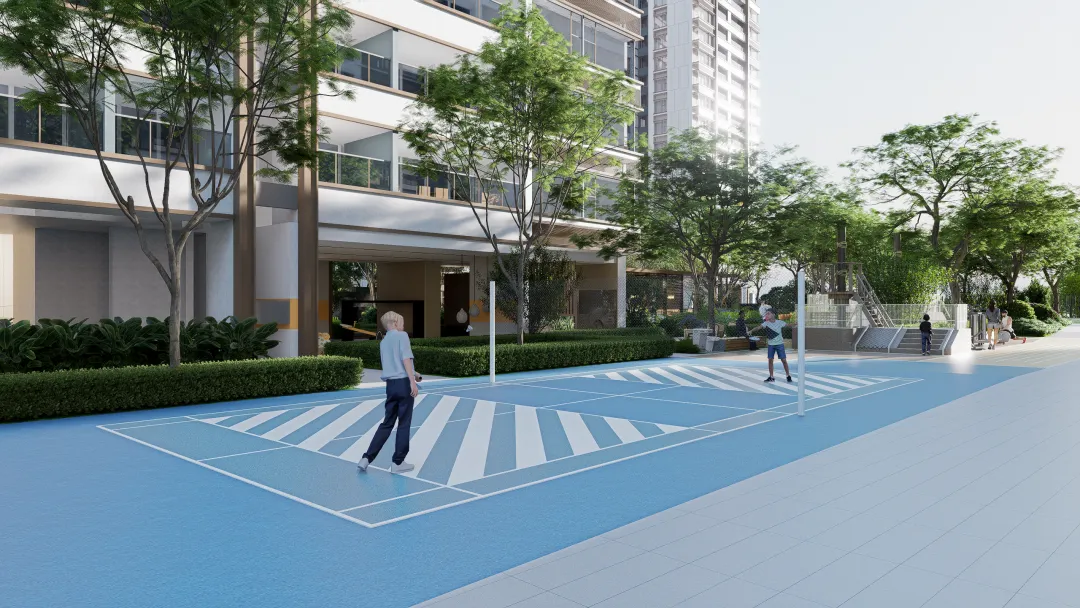 打造集负氧运动训练与多功能球类活动于一体的轻氧能量场,地面铺设专业运动地胶,场地分区清晰,配备可移动羽毛球网,满足日常健身、社交与竞技需求。让运动不止于锻炼,更成为邻里互动的活力纽带。