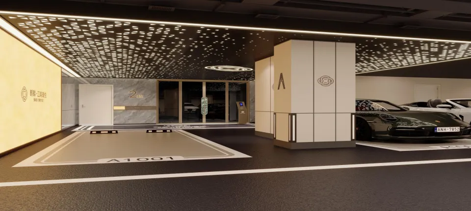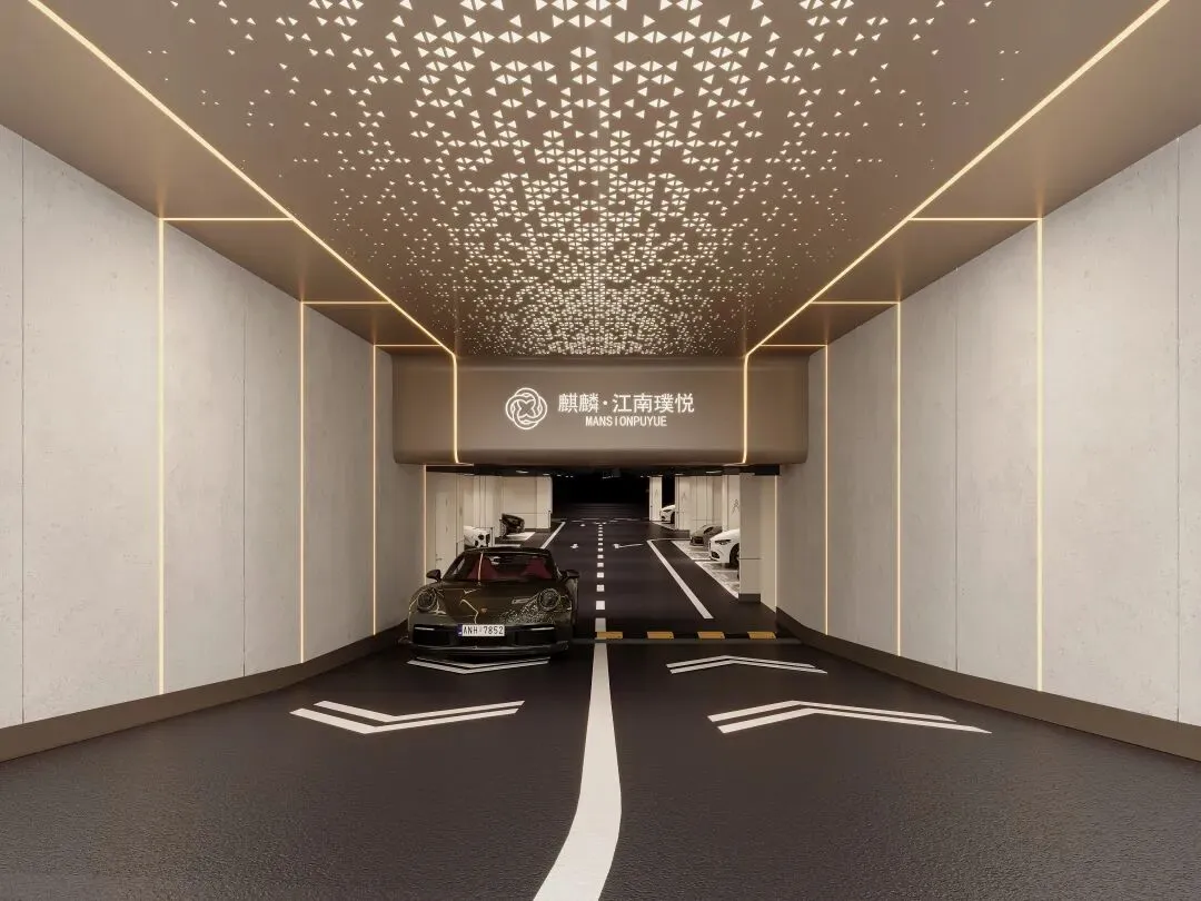 单元大堂与地下光厅均以豪宅标准打造:璀璨星空顶、分色环氧自流平、陶瓷大板砖,搭配香槟金金属饰面与氛围灯带,多重材质与光影交织,让每一次出入,皆具归家的尊崇仪式。
