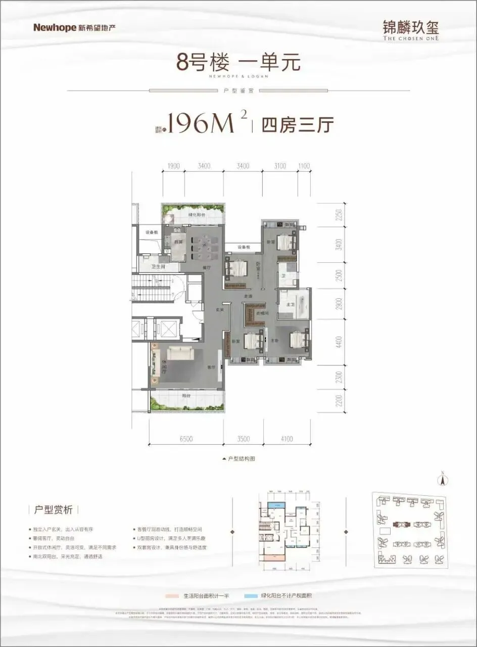 11#:约196㎡ -220㎡ 4房 两梯两户大平层