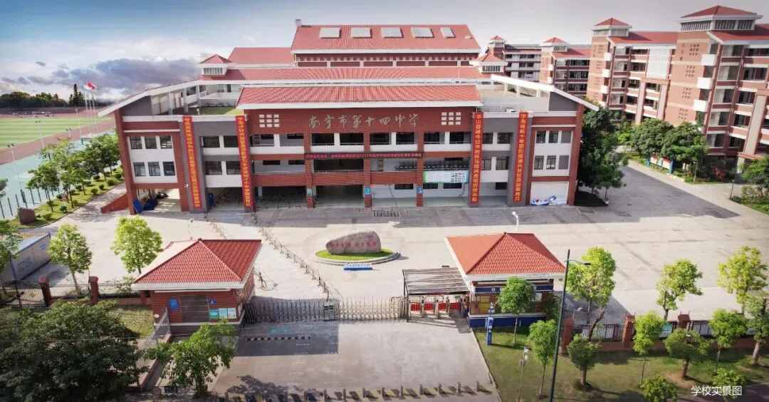办学规模42个班,可容纳学生2100人,校园面积73.54亩。校内设有300米环形跑道、3个篮球场、4栋教学楼;十四中学是南宁市比较大规模中学,五象十四中坚持"全面发展"理念,推行平行班教学模式,无重点班次,所有生源一视同仁,师资无倾斜、教育无差异。让每个学生都能在公平环境中获得成长机会。学校通过14.7%的总评A+率展现综合实力,更开设艺术鉴赏、科技创新等丰富校本课程,其科技创新社团在各类赛事中屡获佳绩,培养学生的动手能力与创新思维。2022年5月,机构被命为“全国家庭教育创新实践基地”。(数据来源于14中校园官方网站)