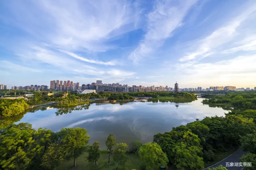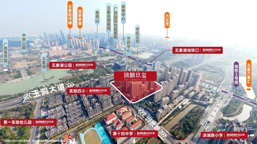 全球每600座城市,才有幸拥有一处城市内湖。这组数字背后,是自然对都市的吝啬馈赠,更是湖居生活难以复制的稀缺密码。五象湖,继南湖之后的又一城市风景生态IP,约1830亩五象湖公园,占地面积约122公顷,水域面积达57公顷,由5个湖泊贯通组成,涵盖景观、休闲、人文、自然于一体.,不仅仅只是最好的生活配套,亦是区域的名片,项目直线距离五象湖公园仅100米,片区内临湖在售楼盘仅此一处,争藏千亩湖境趁现在。