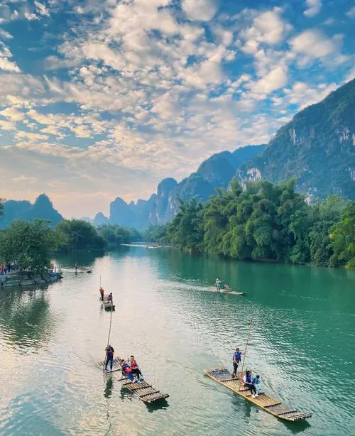 阳朔的山水为什么让人舒服,很多人说不清楚,只能说美,说震撼,但这些词都浅了。真正起作用的是那种尺度感,就是你站在那些喀斯特地貌的山峰下面,会突然意识到人有多小,那些你平时觉得重要的事情有多不重要。这不是什么文艺腔,是一种很实在的体感,你骑着自行车从遇龙河边经过,两边都是那种拔地而起的山峰,绿得发黑的竹林,水流慢得像不动,这时候你脑子里那些乱七八糟的念头会自己停下来,不是你强迫自己放空,是环境直接把你的注意力拉到当下。