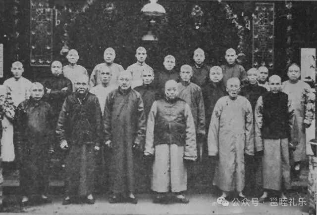 晚清南宁华云善堂全体董事合影留念,旧址在今步行街百盛·西南商都内。照片中的南宁绅商身穿清代长袍马褂,留着长辫子