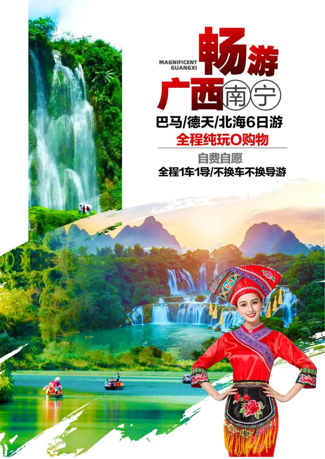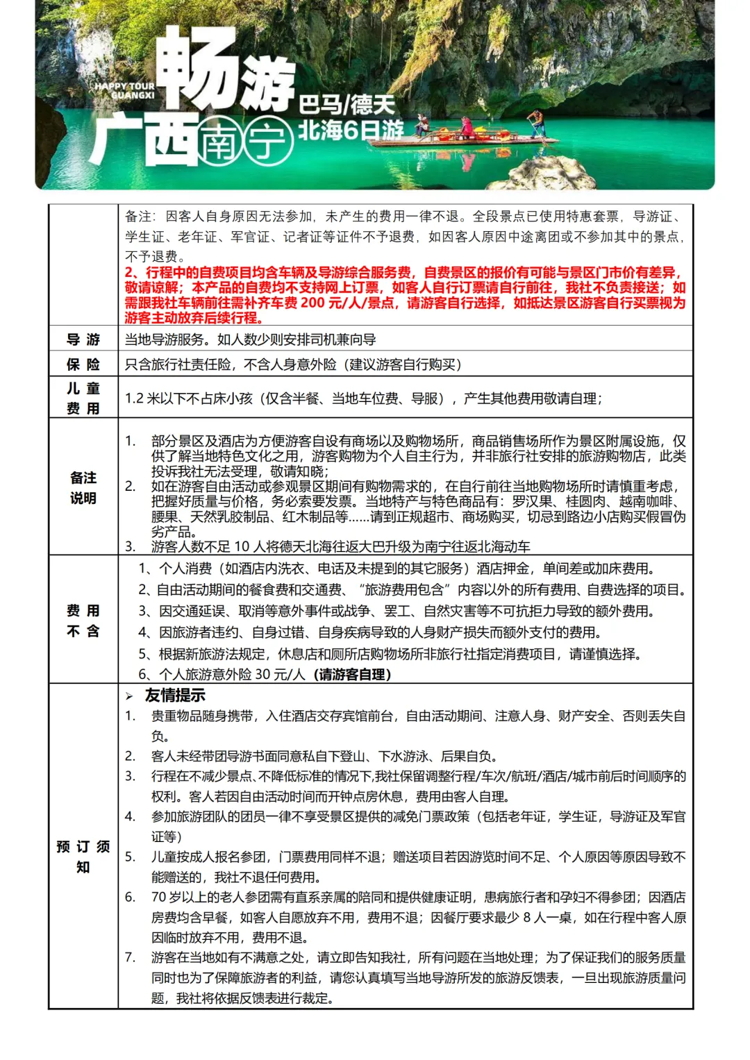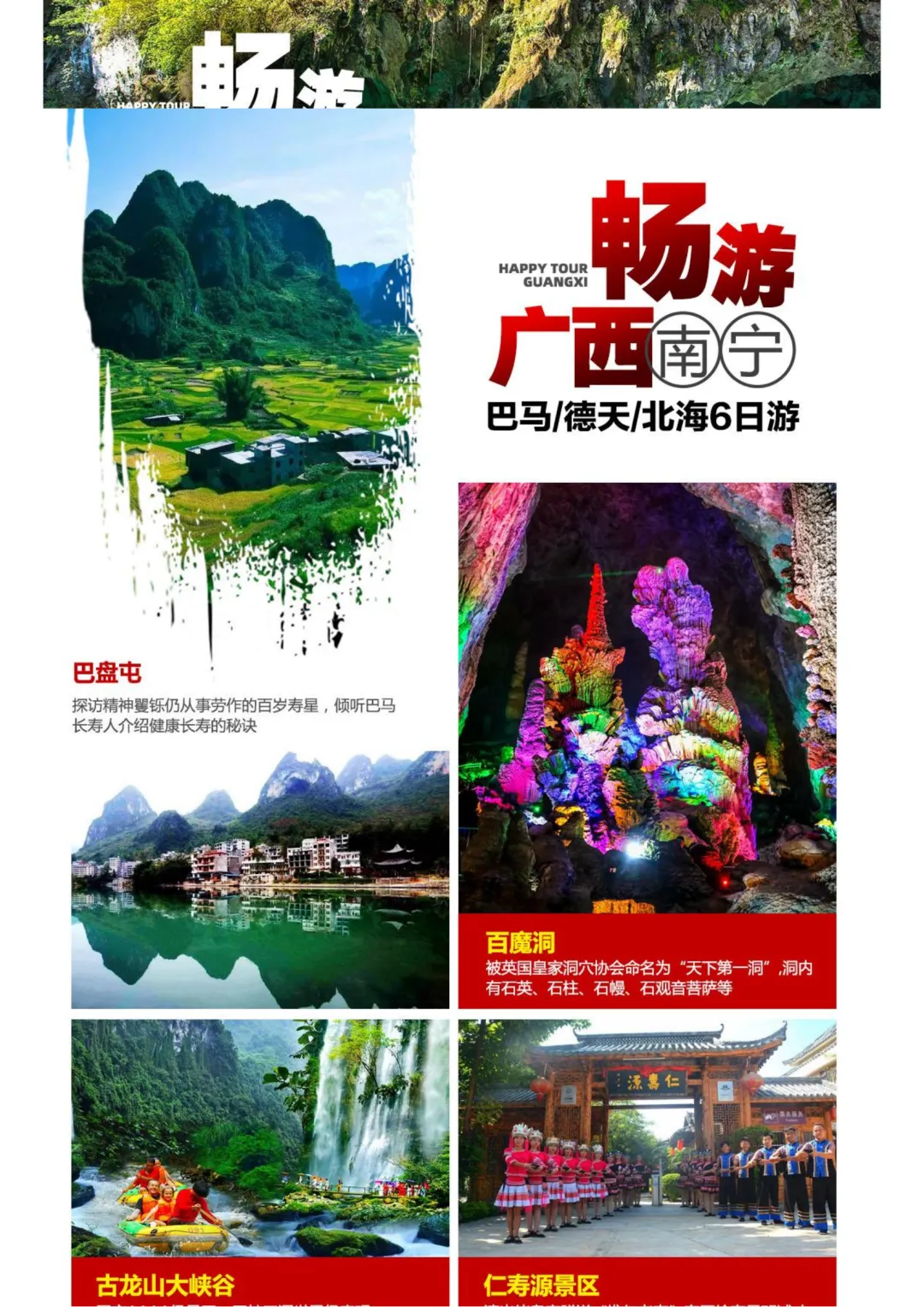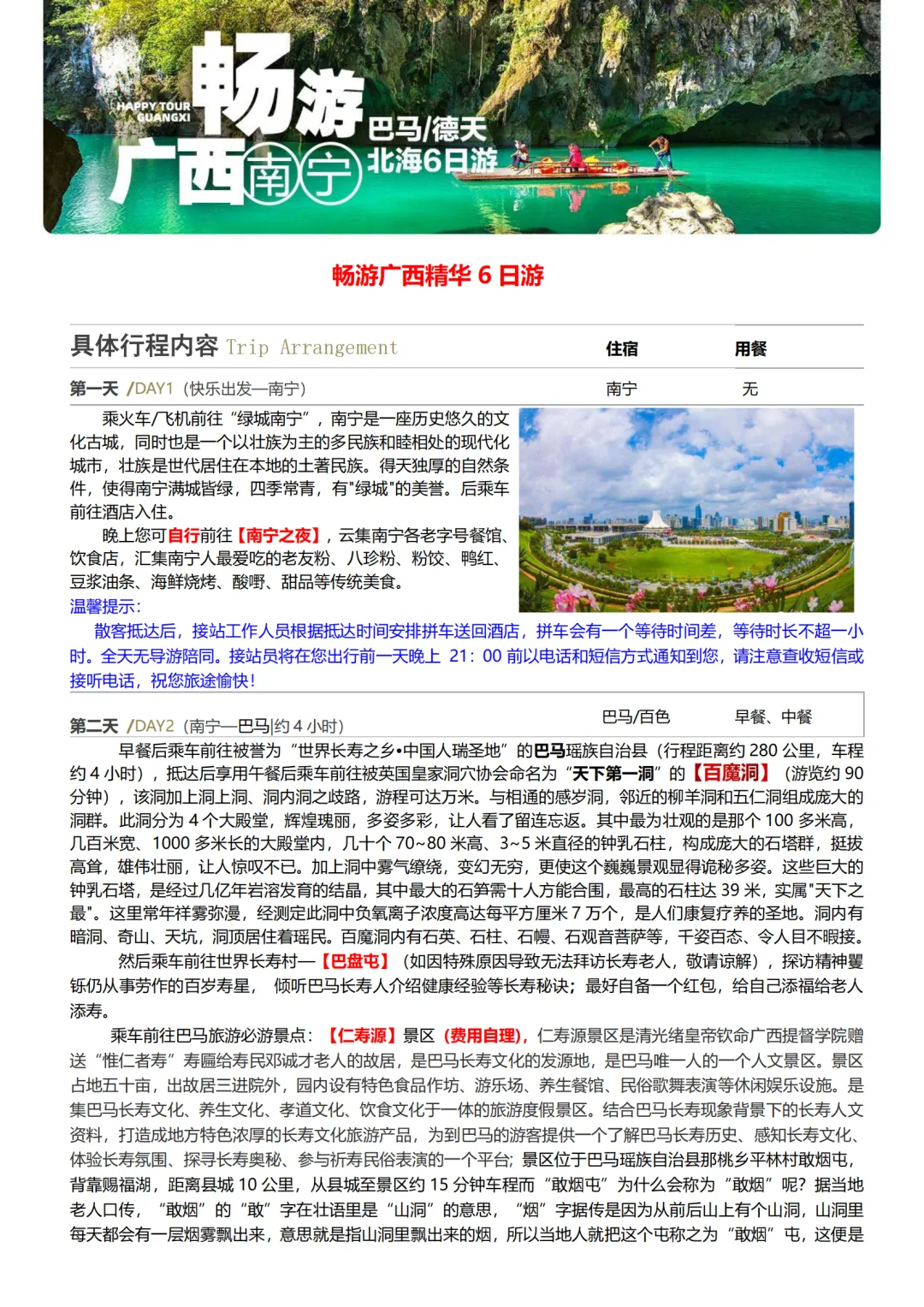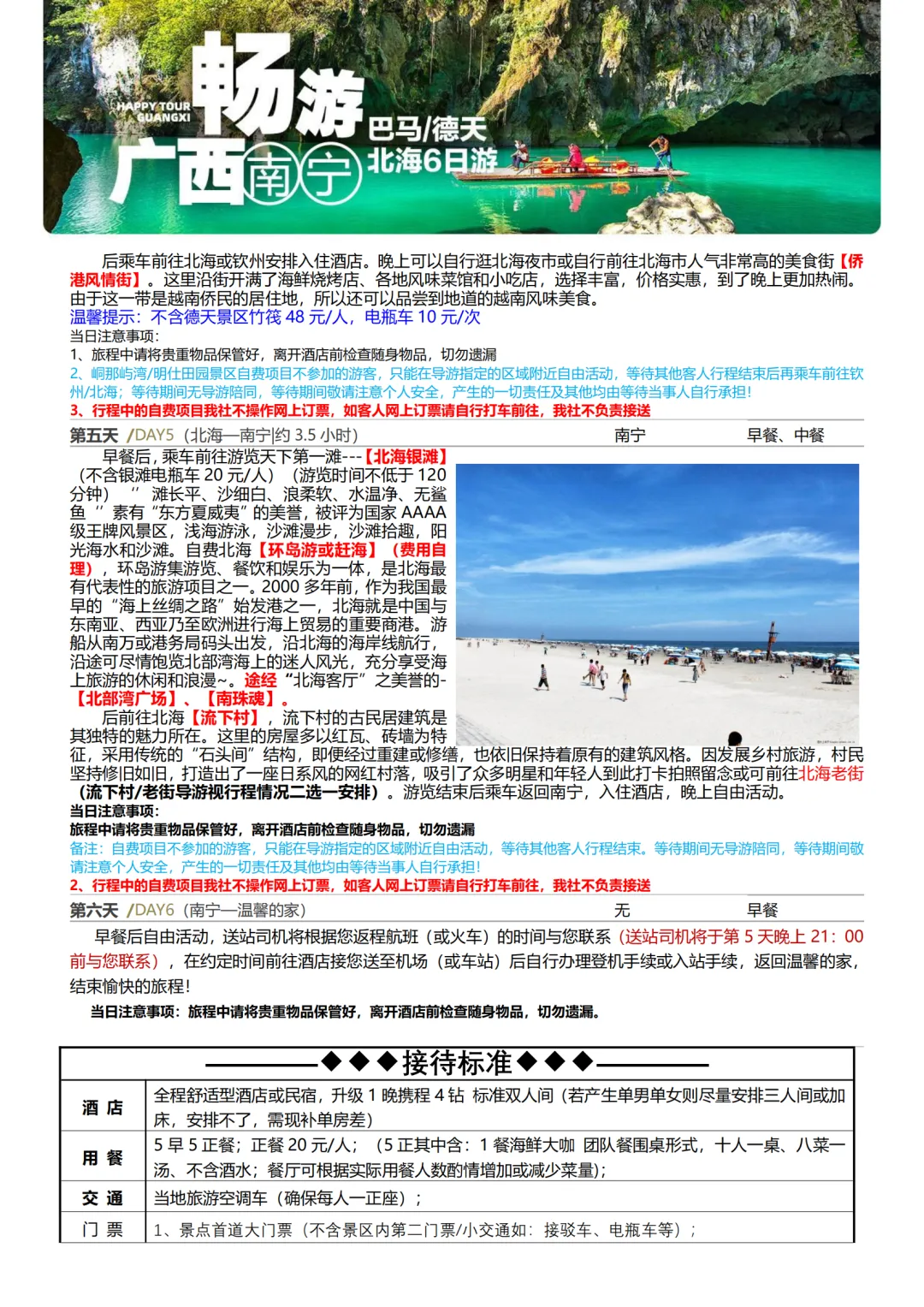 广西旅游【畅游广西】南宁 巴马 德天瀑布 北海 纯玩6日特价游