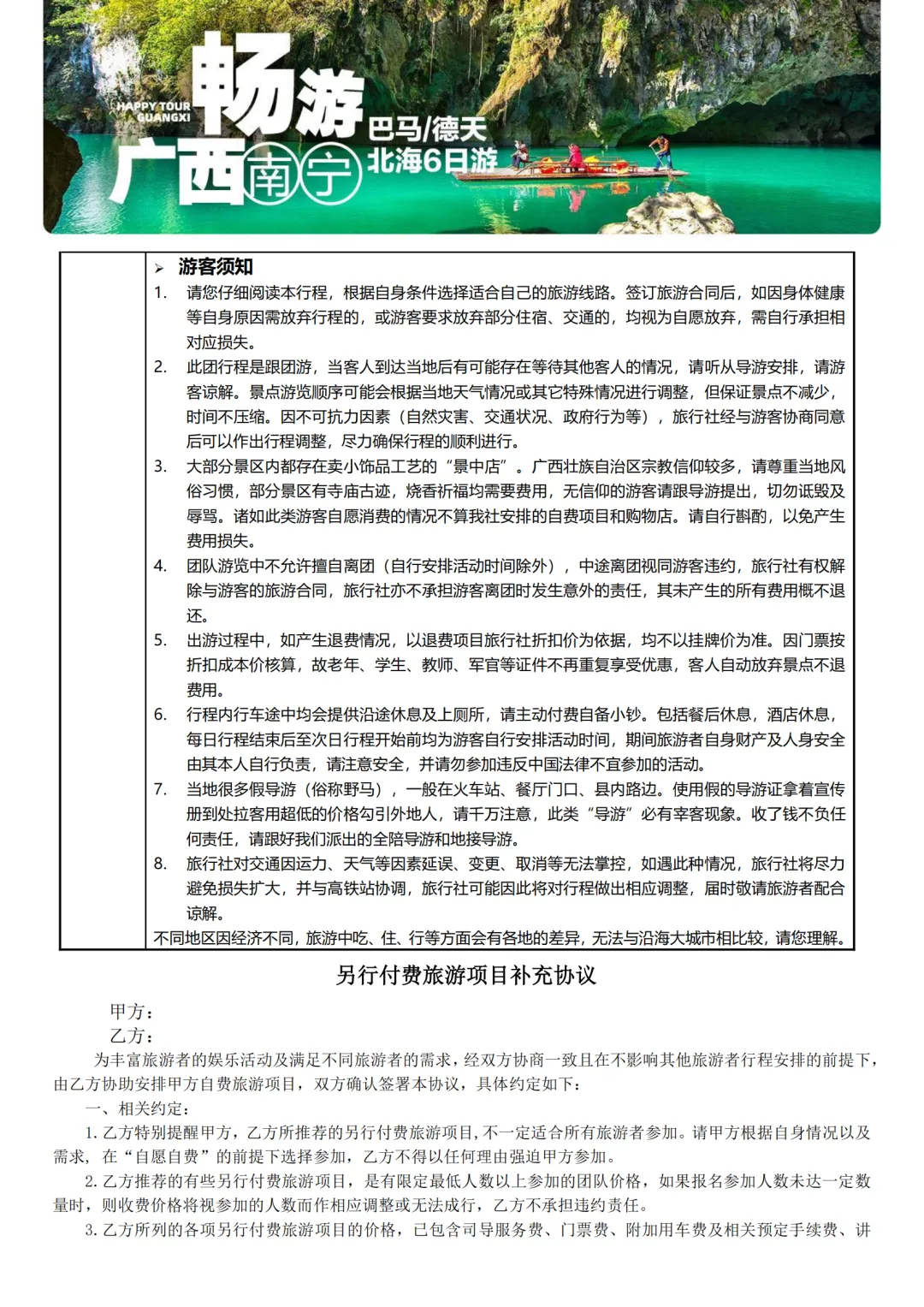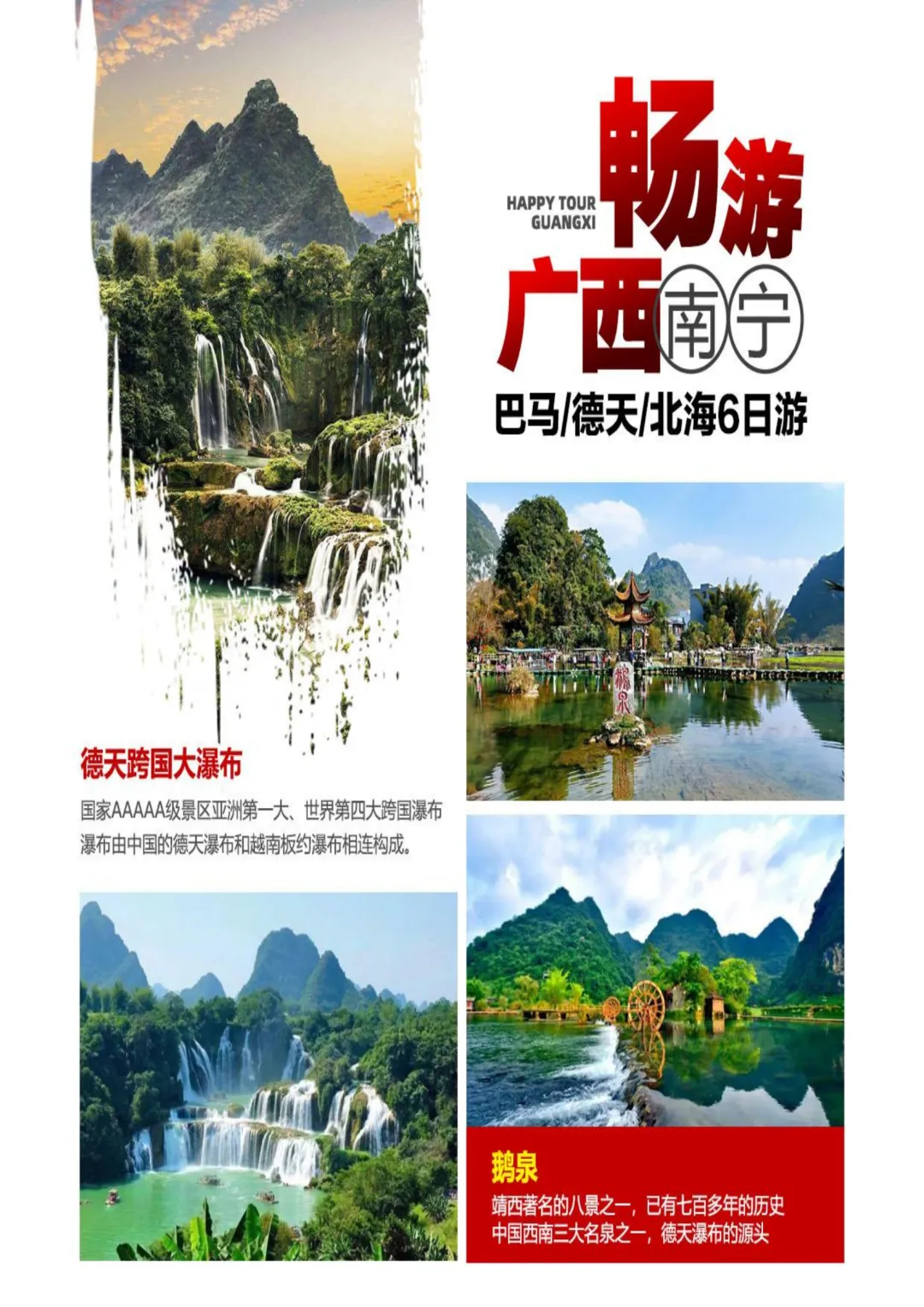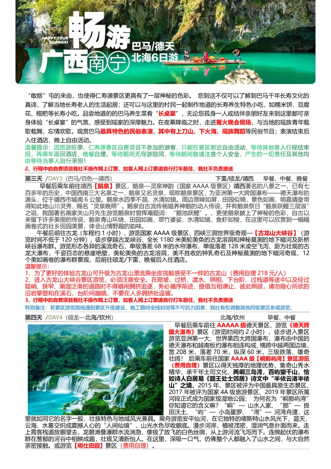 >广西旅游【畅游广西】南宁 巴马 德天瀑布 北海 纯玩6日特价游