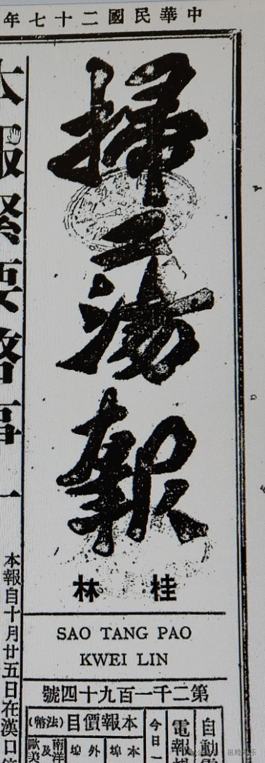 南宁民国日报 1925年10月,广西党政军当局创办《南宁民国日报》由省党部筹委会主任、省政府主席黄绍竑兼任社长,陈勉恕任总编辑,不久由雷天壮继任总编辑,1926年夏,由省委宣传部秘书黄华表继任总编辑,旋而任代社长。1927年“四一二事变后任社长。其后历任社长为包公瀚、黄同仇、李耀明、罗绍徽、邵建中、黄露茜、刘范、黄征夫、韦永成、尹治、胡讷生、潘宜之、胡讷生、黄楚等。1939年11月,日军侵入广西境,报社21日停刊,迁田东,1940年1月10日在田东复刊出版,继而于7月迁百色出版。1941年初,由百色迁回南宁,3月1日恢复出版。1944年10月,日军再次分兵几路入侵广西,报社迁去百色,并入由桂林迁去的广西日报,南宁民国日报结束。报社自创办时起,即设在今共和路自治区工商联南侧,自设有印刷厂房,图盘印刷机、发电机、电等等。该报在大革命时代是一张革命的、进步的报纸,对宣传孙中山的言论,对揭露、抨击反动军阀官僚的丑恶,批判封建思想,以及支援工人、农民学生革命运动等方面,起到了一定的推动和宣传指导作用。但自1927年“四一二”事变以迄1949年南宁解放,该报一直是为桂系的舆论工具。