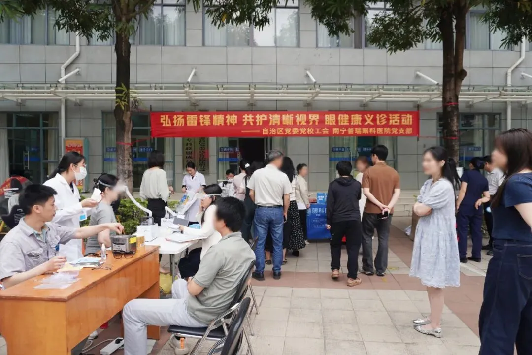 为深入弘扬雷锋精神,践行志愿服务理念,切实守护广大教职工及学员的眼健康,3月27日,南宁普瑞眼科医院党支部联合自治区党委党校工会,在党校总服务台广场开展“弘扬雷锋精神 共护清晰视界”主题义诊活动,将专业的眼科医疗服务送到校园一线。
