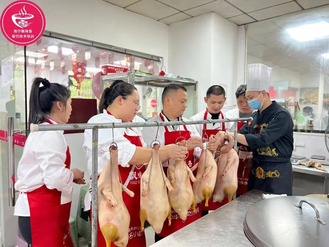 南宁飘味香餐饮培训,深耕广西特色餐饮培训近20年,深谙烧鸭的盈利逻辑和手艺精髓,特邀拥有20年烧鸭制作经验的老师傅,全程实操教学,从选鸭、腌制、风干到烤制,每一个环节都毫无保留,让0经验小白也能做出地道广式、广西风味烧鸭,靠这一口香,轻松开启创业路!- 受众极广,刚需拉满:男女老少都爱吃,覆盖家庭、上班族、学生、聚餐等全场景,复购率超75%,不管是斩件零售(25-35元/斤),还是搭配米饭做烧鸭饭(15-25元/份),都不愁客源;