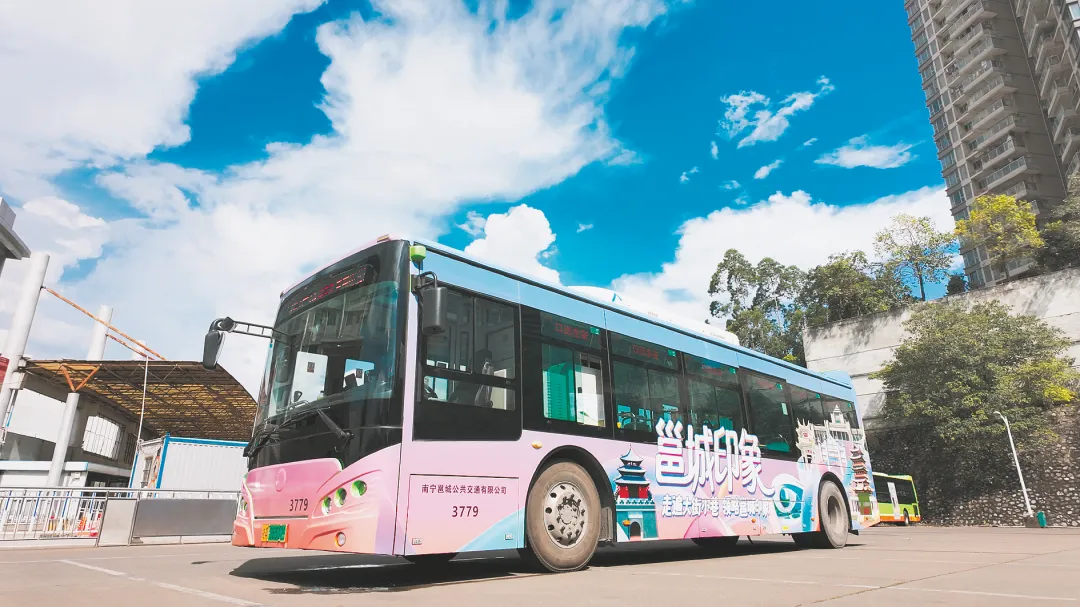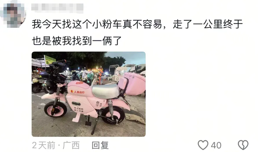 看到这辆公交车的“新模样”,又让人想起了之前火遍南宁的“老友粉”色共享电单车。