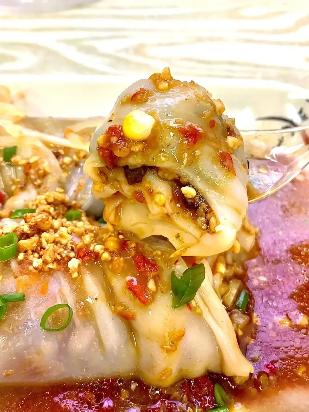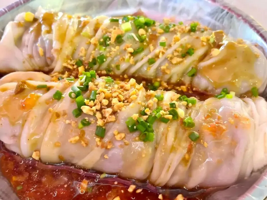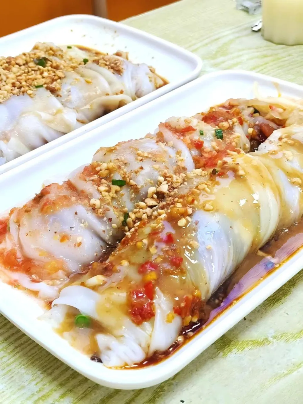 真正点亮灵魂的,是那勺黄皮酱。用黄皮果酿制的秘制酱汁,微酸微甜、咸鲜柔和,不抢味、不腻口,恰恰把米香与馅料鲜抬到极致。淋上一圈,再添少许辣酱花生碎,一口咬下,粉皮软滑、馅料鲜香、酱汁清甜,层次温柔又清晰,不油不燥,舒服到心坎里。