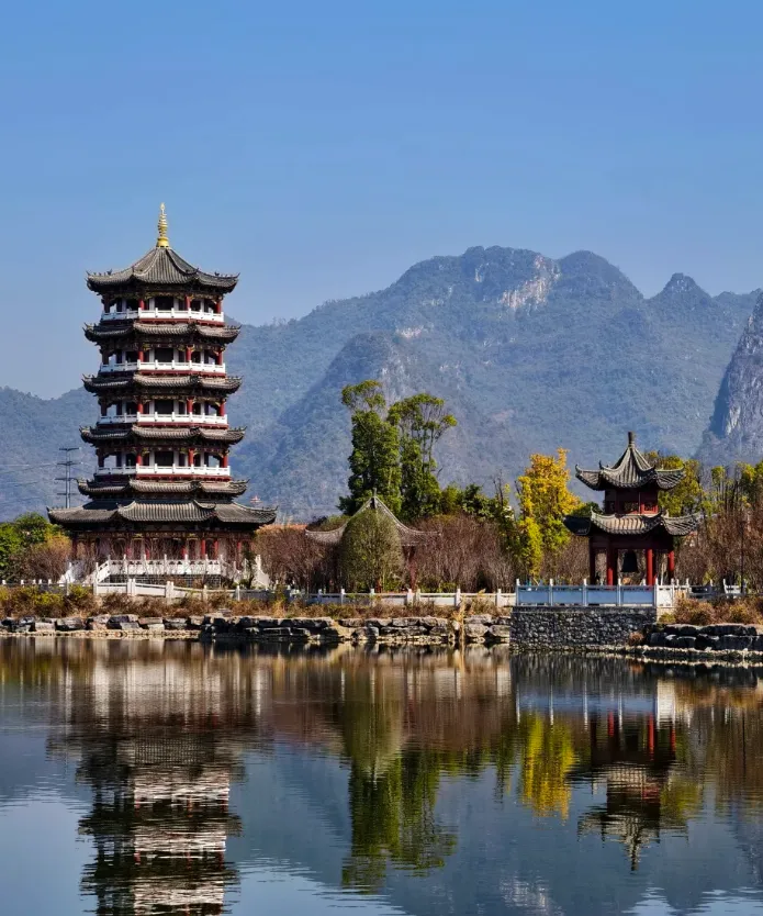拍照的话,我更建议清晨和傍晚。黄姚古镇适合斜侧面取景,让光落在青砖和木窗上,人物不用站太正,慢慢走过去就行。玉石林则适合阴天,石头层次会更柔,不会被硬光打平。季节上,3到5月、10到12月都舒服,前者看水气和青绿,后者空气干净,晚上也更适合泡温泉。夏天也能来,但要调配好节奏,中午真会犯困。
