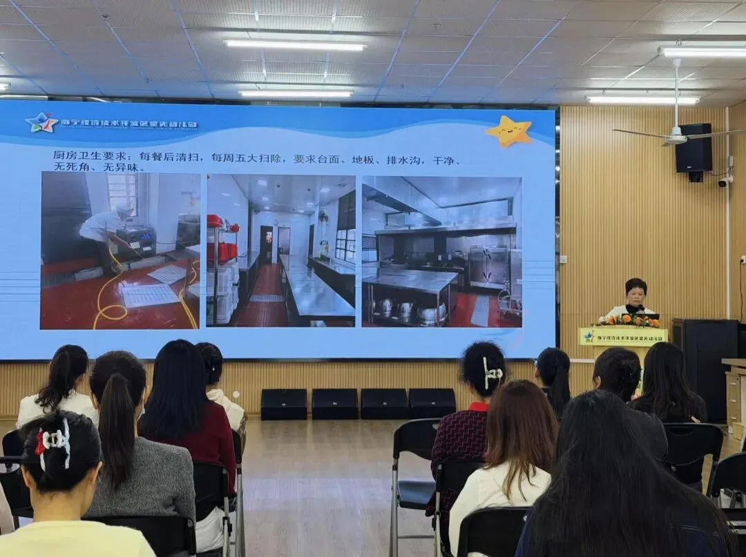 后勤负责人王老师详细介绍了膳食营养与校园安全的管理机制及实施细则,通过公开透明的汇报,有效增进了伙委成员对园所工作的理解与信任。