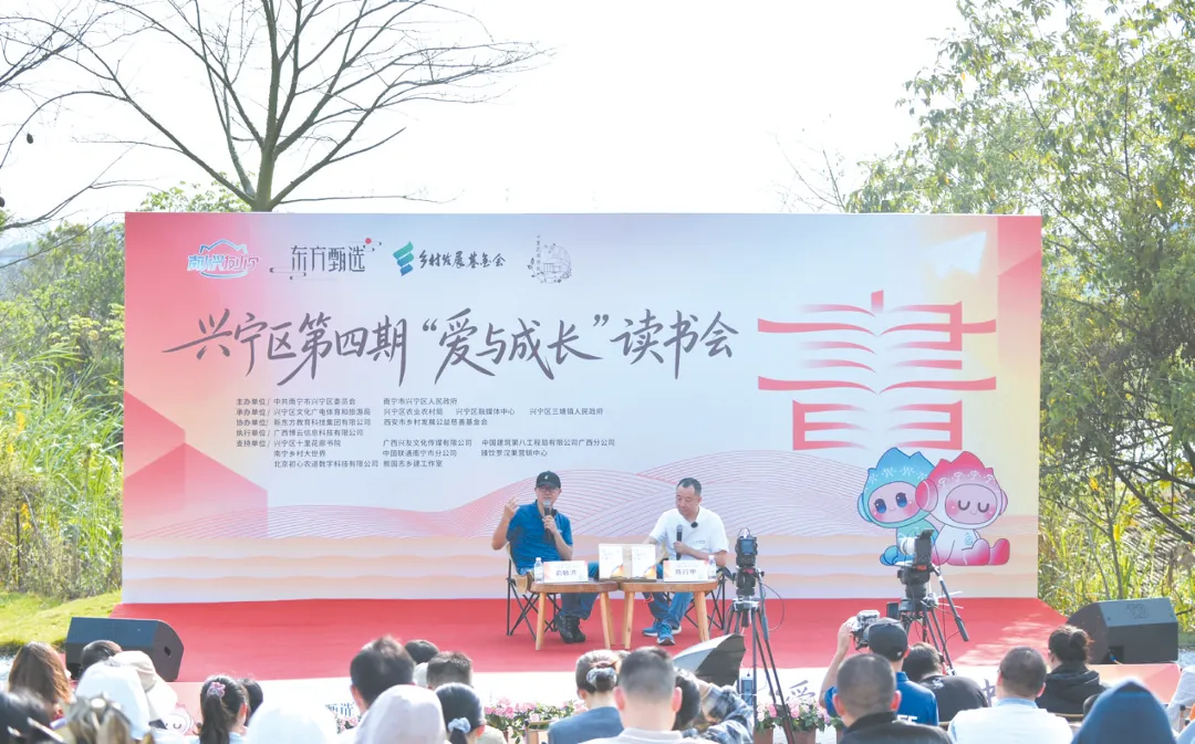 面对满目灿烂与手中书卷,俞敏洪与陈行甲在兴宁区第四期“爱与成长”读书会上分享了各自的读书心得,并道出了本次来到南宁的契机,源于兴宁区与西安市乡村发展公益慈善基金会、鲍国志乡建工作室、北京初心农道数字科技有限公司共同打造的以十里花廊书院为代表的数字乡村项目,期望通过持续关注、助力乡村发展,进一步助农惠农。不少粉丝读者特地赶来聆听学习,读书会现场还设置了提问交流环节,家长和孩子们纷纷表示受益匪浅。