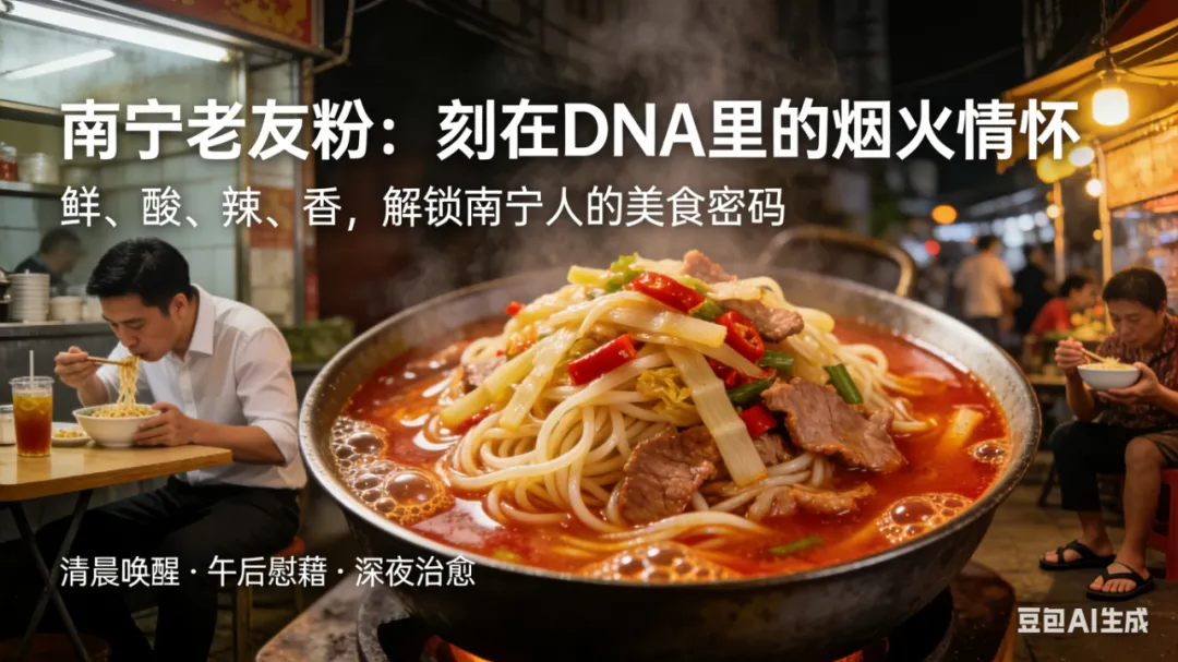 清晨唤醒味蕾的酸香,深夜抚慰心灵的滚烫。一碗镬气十足的老友粉,是南宁人刻在DNA里的味觉信仰,更是街头巷尾永不散场的人间烟火。
