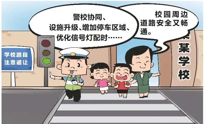 在南宁市民族大道东段小学,交管部门与学校联合成立护学工作组,整合多方力量协同护学,强化现场疏导与违停整治,严查违法停车、不礼让行人等行为。同时,民警对学校教职工及安保人员开展专项技能培训,并配备电子哨、反光锥桶等装备,形成警保联动护学机制。针对交通设施老化问题,交管部门对校门口黄色网格线、斑马线重新施划,安装爆闪警示灯,增设非机动车减速带,并在周边路口设置违法抓拍卡口,补齐、完善交通标识标牌,协同学校铲平门口花坛,拓展家长接送停留区域。
