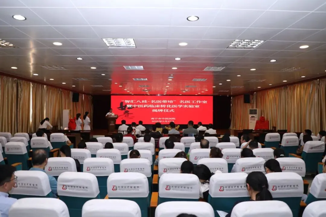 南宁市中医医院举行“名医工作室”暨“中医药临床转化医学实验室”揭牌仪式。李跃华、朱婉华两位教授名医工作室同步落户,历经两年建设的转化实验室正式启用。现场还举行了传统师承拜师礼。两大平台同步落地,标志着医院在人才培养与科研转化领域迈入新阶段,将进一步提升中医药服务能力,助力广西中医药事业发展。