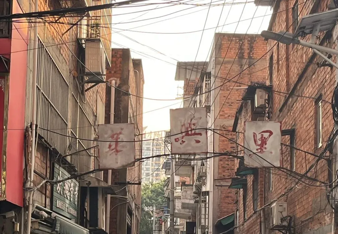 这里仍保留老南宁上世纪80年代的建筑风貌,红砖矮楼、斑驳的墙面、杂乱的电线,巷口的“亚娃发廊”尤其怀旧复古。