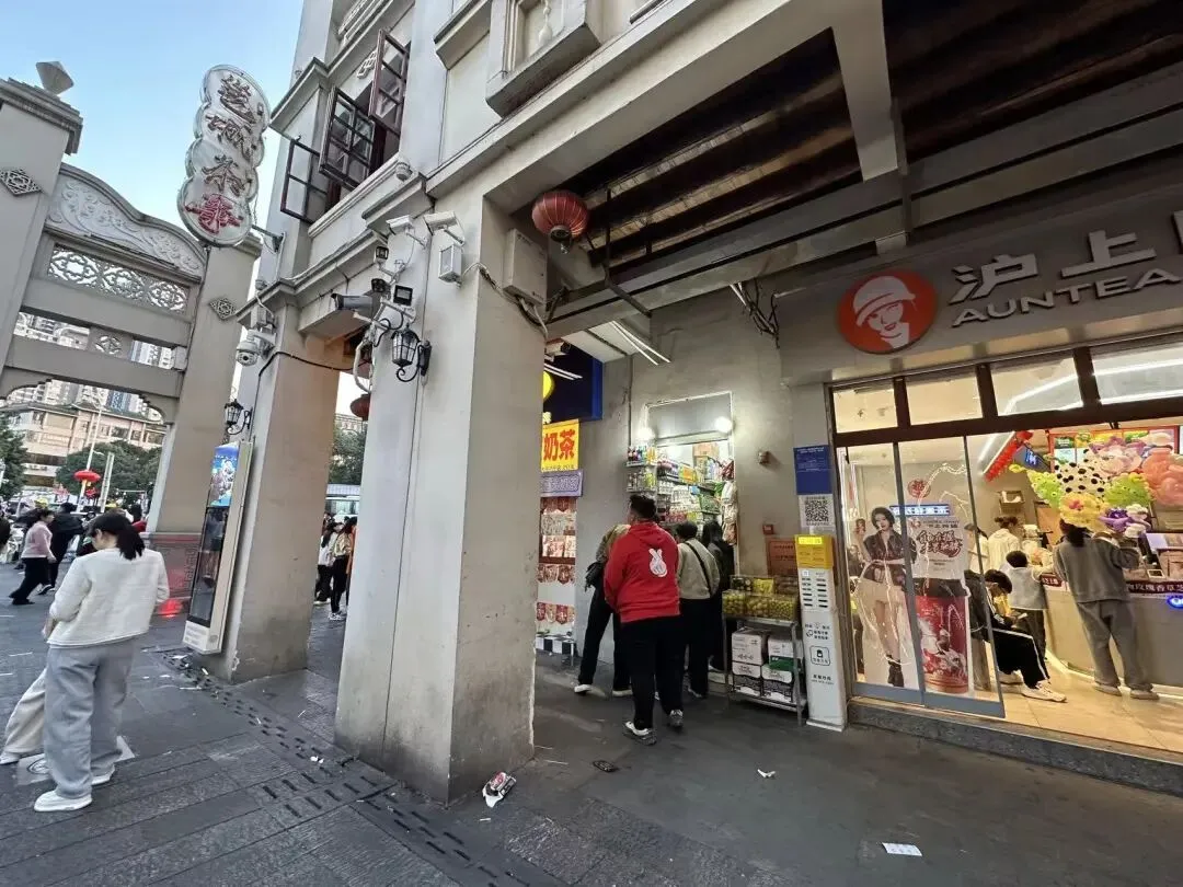在步行街这个小角落竟然有个小小的便利店,而且还很多人,在那么多奶茶店的中间“夹缝生存”。