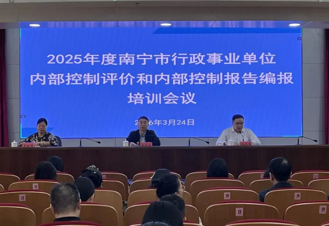3月24日,南宁市财政局召开2025年度全市行政事业单位内部控制评价和内部控制报告编报培训会议。会议深入贯彻落实党中央、国务院关于加强财会监督和健全内部控制体系的决策部署,按照财政部及自治区财政厅有关工作要求,对年度内控重点工作进行动员部署。市财政局党组成员、副局长黄杨剑出席会议并讲话,各县(市、区)、开发区财政局和市直各行政事业单位相关业务负责人近300人参加培训。