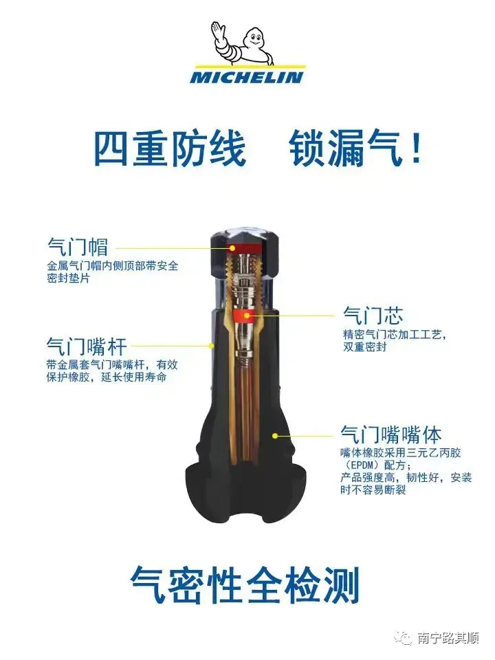 经常检查气门嘴的气密性;更换新轮胎,请记得更换新气门嘴!保护轮胎,保护车主;更保护我们持久的轮胎生意!